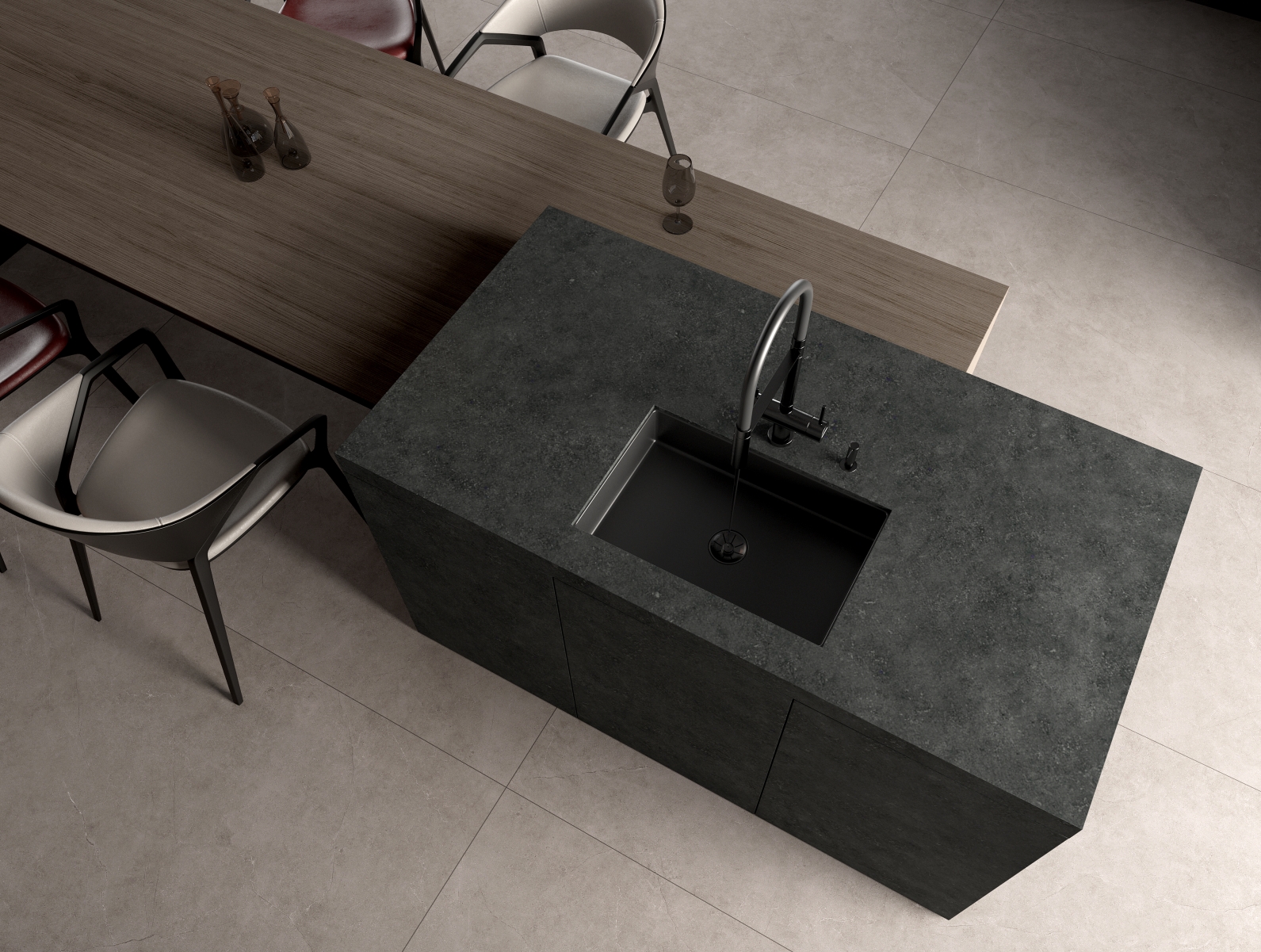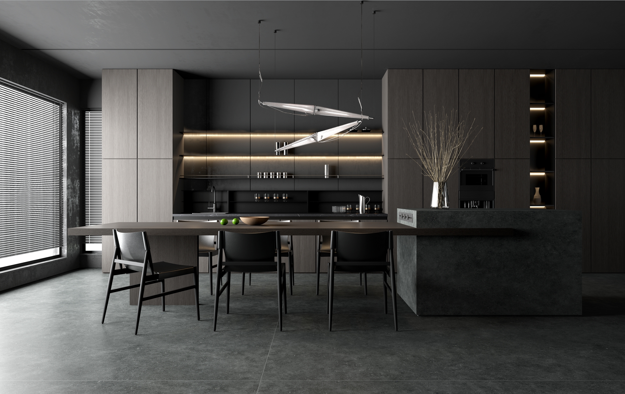 凝固的紋理中蘊涵砂石的涌動跳躍,粗獷而流動自然別有一番璀璨星辰的動態神韻。黑曜嵐幕巖板,再現宇宙之外的深邃與神秘。與生俱來的霸氣與魅惑,不會因潮流而變化。質感非凡,層次豐富,把現代人對自然的渴望融入巖板設計中,喚醒內心最深處的悸動。