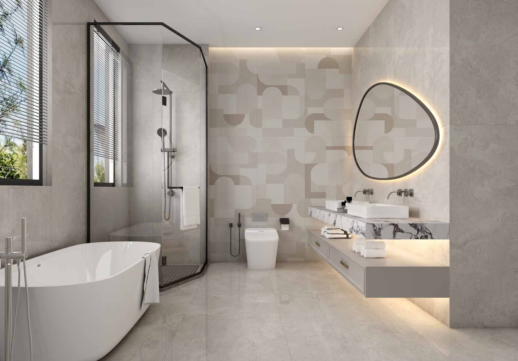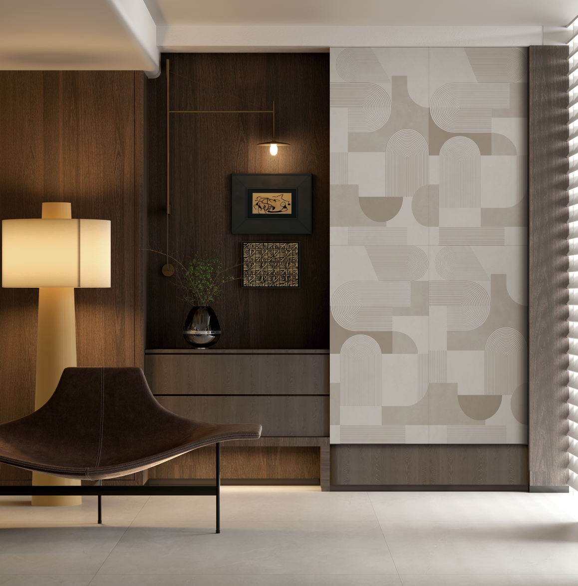 萃取時尚美拉德色調,醇厚大地色系暈染,獨特紋理交織,融合QD瓷磚特有元素,演繹空間的溫馨與雅致,詮釋都市生活的精致與慵懶。
