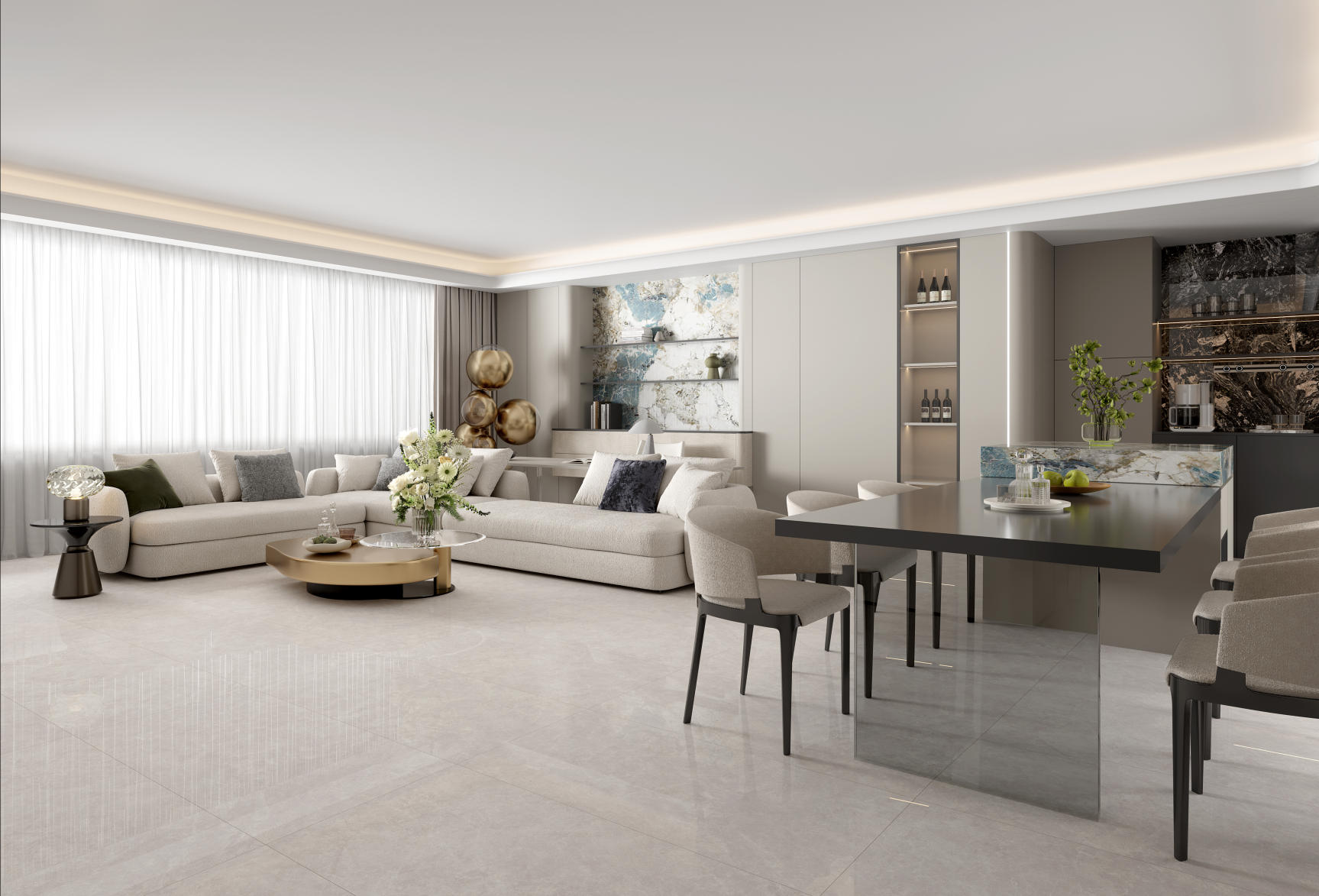空間應用:酒店大堂、背景墻等高端場所;室內墻面/地面,客廳、餐廳、廚房、臥室衛生間、陽臺、玄關、過道等