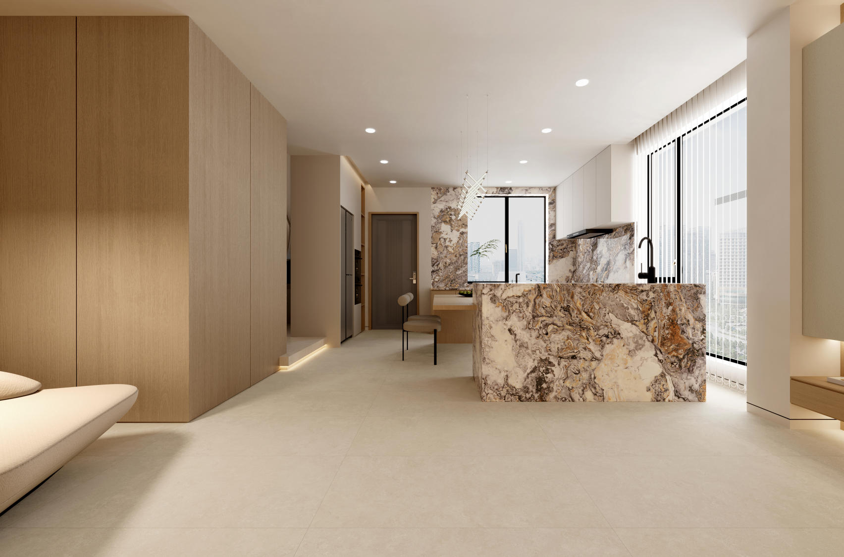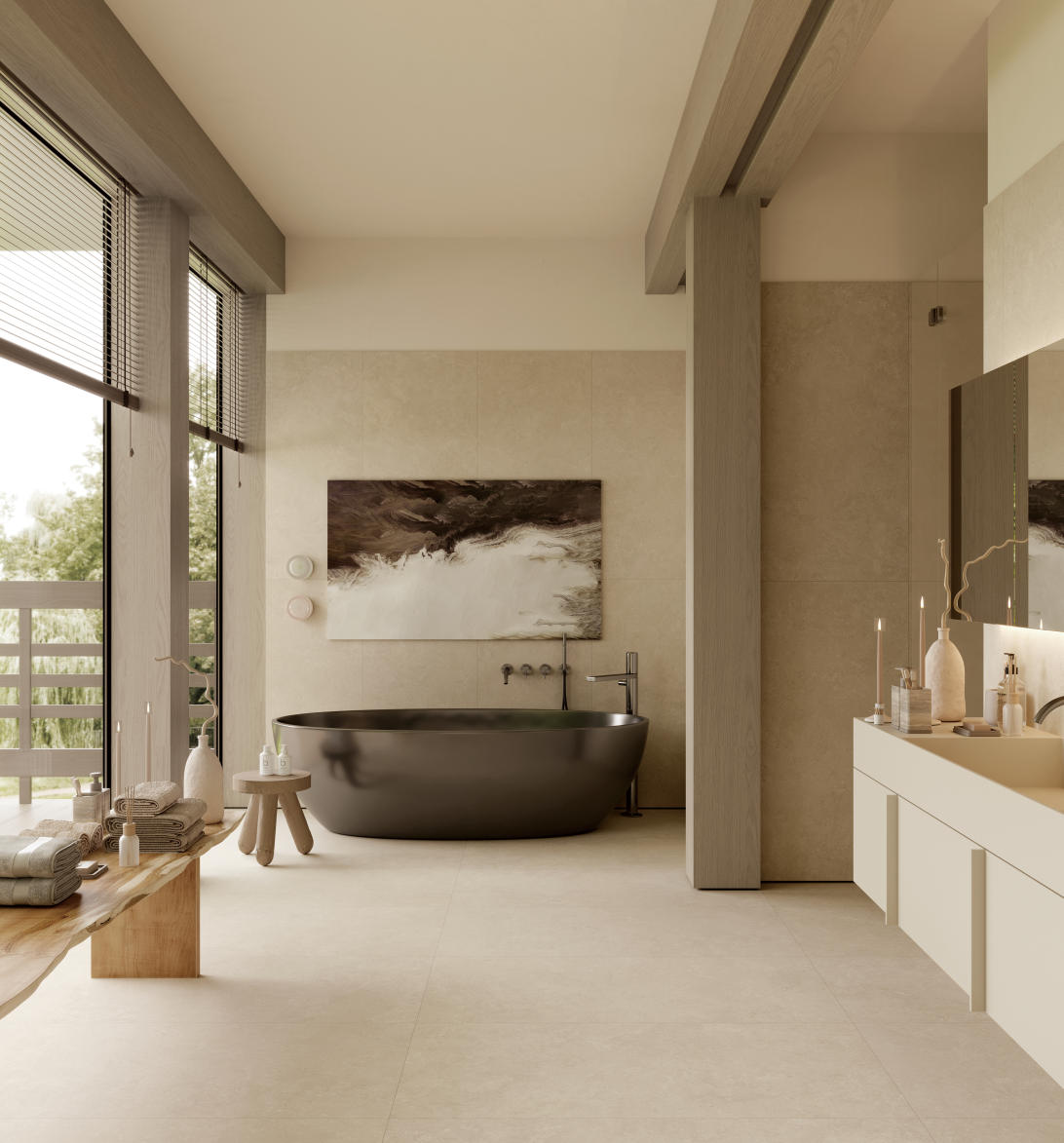 米灰色調冷靜而克制,復刻萊姆石細膩斑駁的原生肌理,將自然的粗獷與工藝的精致揉成共生美學,再現萊姆石自然生長的韻律感。這種自帶高級感的色彩,是現代簡約與輕奢風格的理想搭檔。