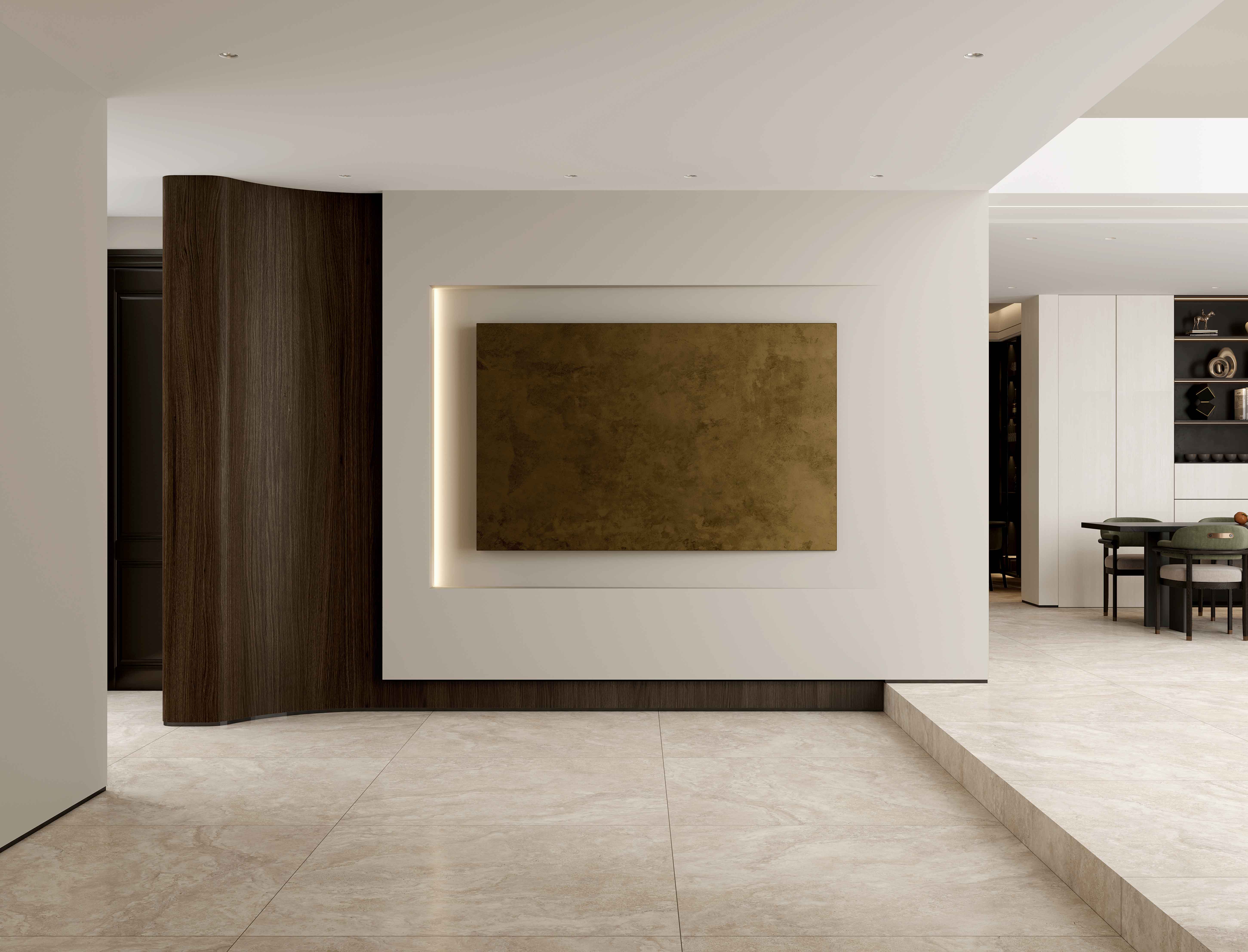 溯源億萬年前波特蘭島的自然美學與歐洲建筑經典美學,復刻經典洞石獨有的孔洞肌理,或張揚、或粗狂、或熱情、或冷酷融合水泥斑駁的肌理質感,打造出一種極具現代感和飽滿質感的空間效果,讓人有回歸本質與自然的感覺。